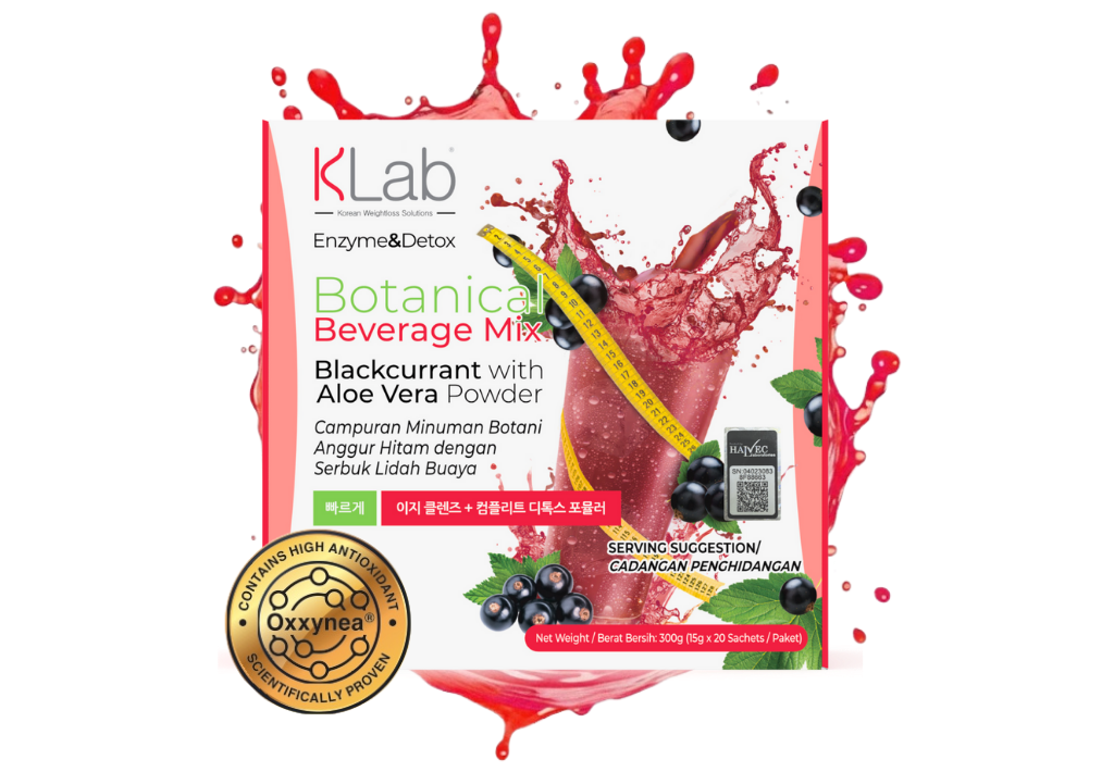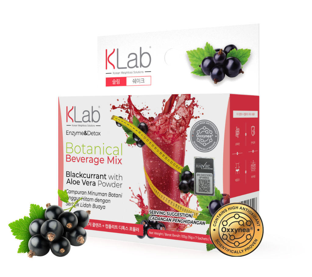 KLab Smoothie Enzyme&Detox with Oxxynea® and antioxidant BlackCurrant flavor, effectively aids in body cleansing and shaping, harnessing antioxidants for detoxification, supporting weight management, and promoting overall health, all with the added nutritional and flavor benefits of blackcurrant.